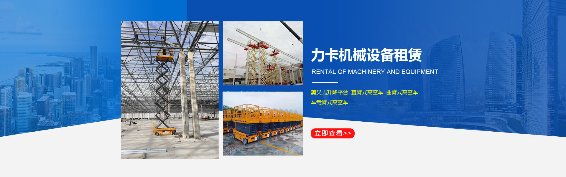 洛陽(yáng)力卡機(jī)械設(shè)備租賃有限公司是一家從事高空作業(yè)平臺(tái)租賃的企業(yè)。公司現(xiàn)有6-12米剪叉式升降平臺(tái)、16-20米曲臂式高空車(chē)、20-58米直臂式高空作業(yè)車(chē)、自行越野剪叉車(chē)等,車(chē)輛新、型號(hào)齊全、可滿足各種高度、各種環(huán)境的高空作業(yè)。公司全部采用品牌設(shè)備安全又可靠。